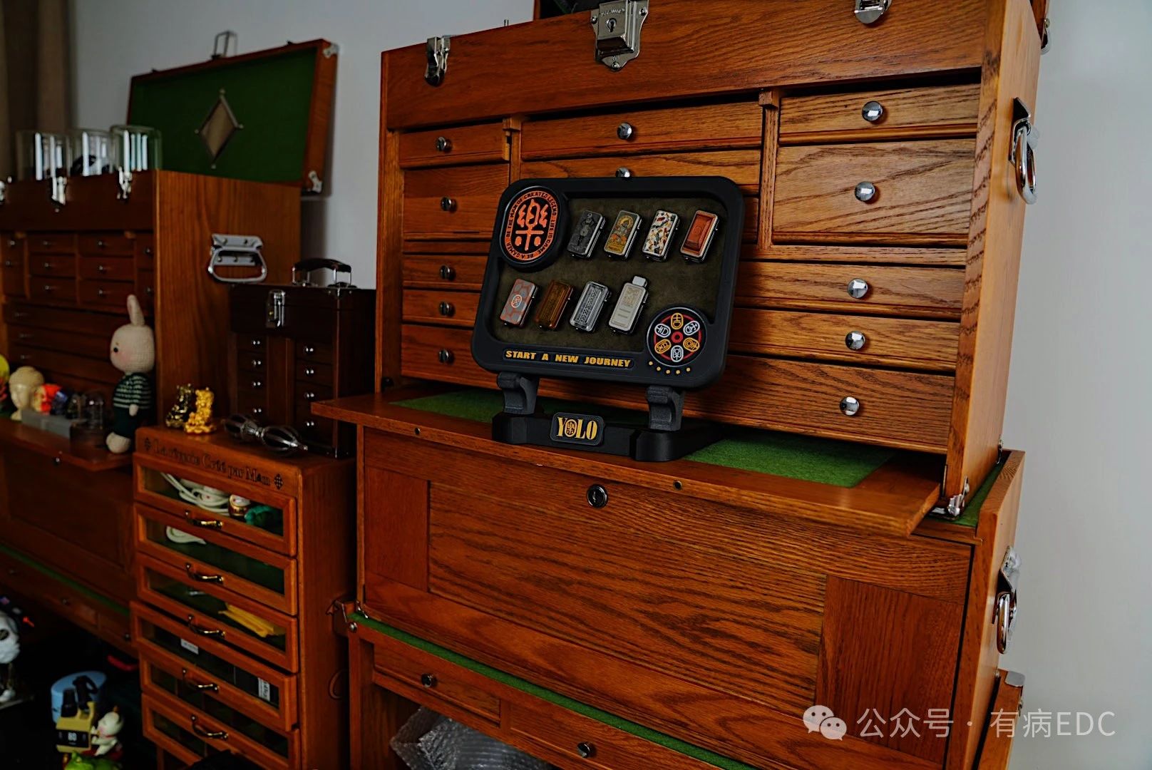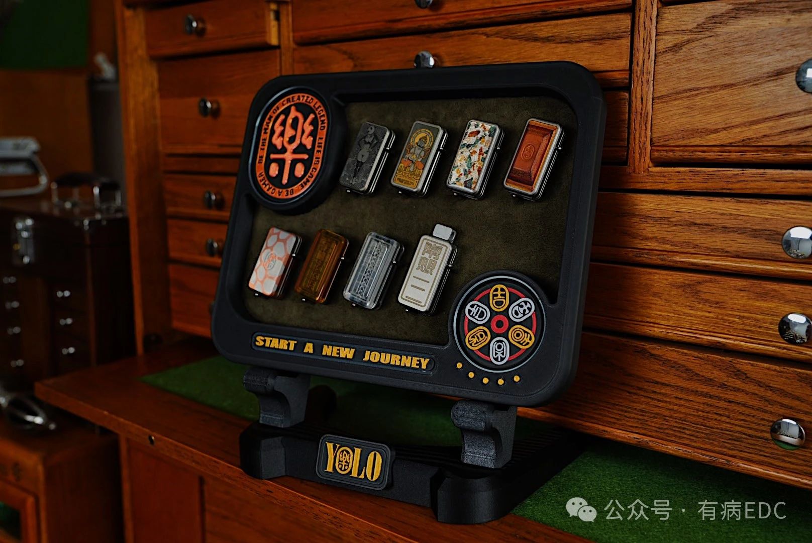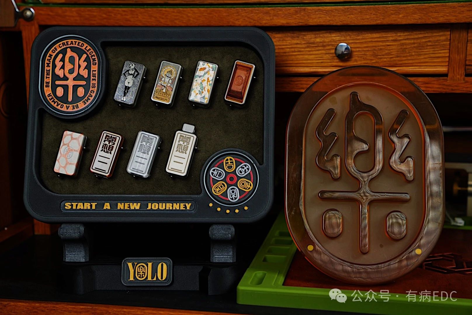 The whole is walnut wood + silk screen LOGO. The small display stand can hold 6 sets of dragon patches, 6 on the front and 6 on the back. The large dragon display stand can hold 6 sets of patches + 2 main bodies.