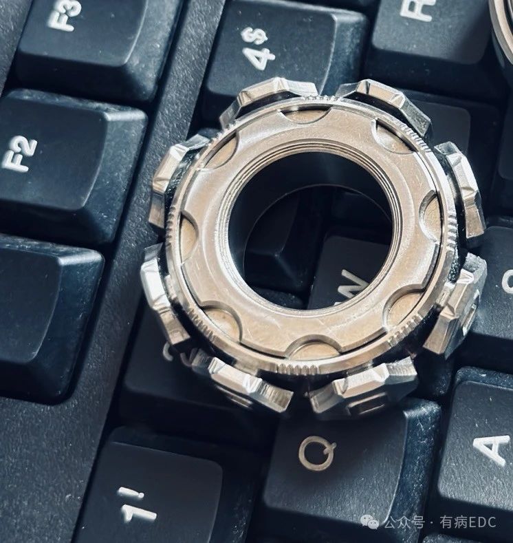 The infinite slider is made of 316 stainless steel, 14mm thick, 61g in weight, and is configured in 6+8 mode. Surface is matte. The frosted surface is combined with the carving, and the partial polishing gives it a special look like a glacier.