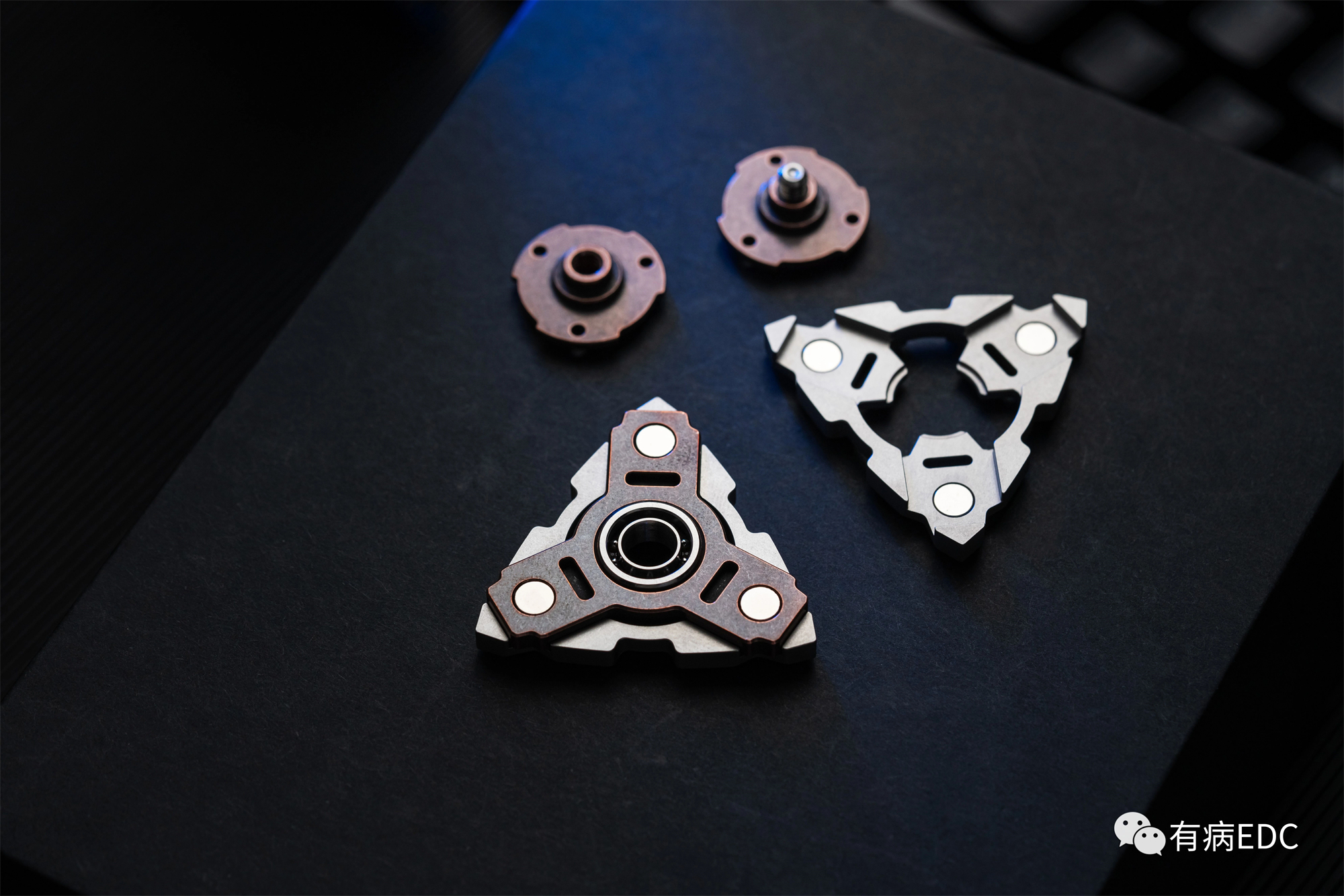 Triangular patch structure fidget spinner, the main body is a magnetic suction structure fixed with two materials