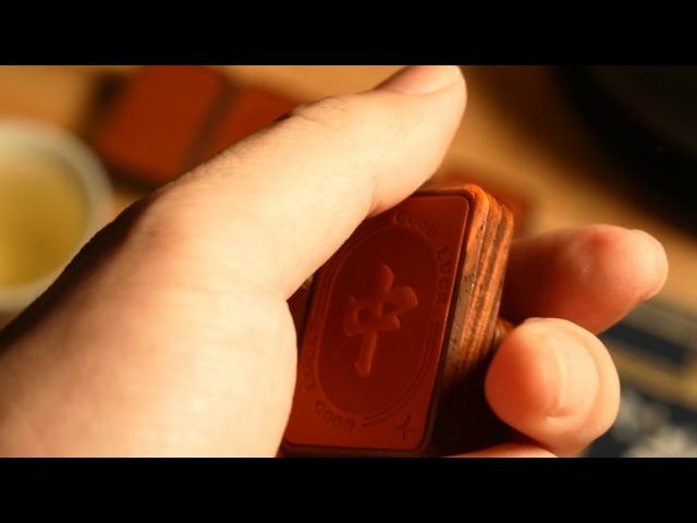 ’Material: Dalbergia melanoxylon + brass + vegetable tanned leather